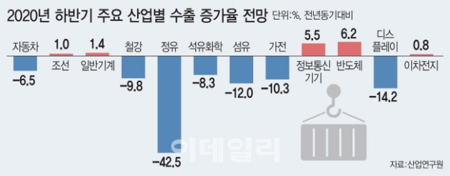 산업연구원 역시 12대 업종 중 정유, 디스플레이를 비롯한 7개 업종이 하반기에도 수출 부문에서 부진을 면치 못할 것으로 내다봤다.