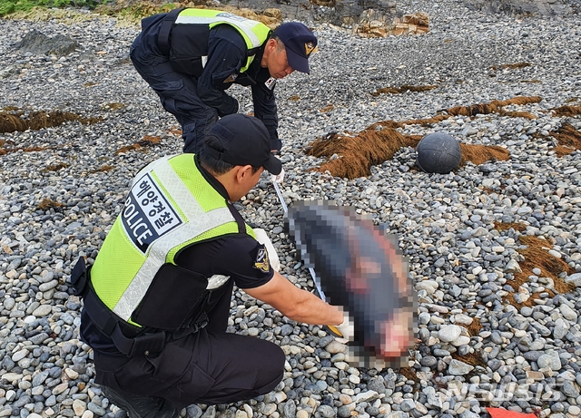 25일 제주해양경찰서에 따르면 지난 24일 오후 6시20분께 제주시 추자면 모진이몽돌해변 탈의실 앞쪽 해안에서 상괭이 사체가 있다는 신고가 접수됐다.