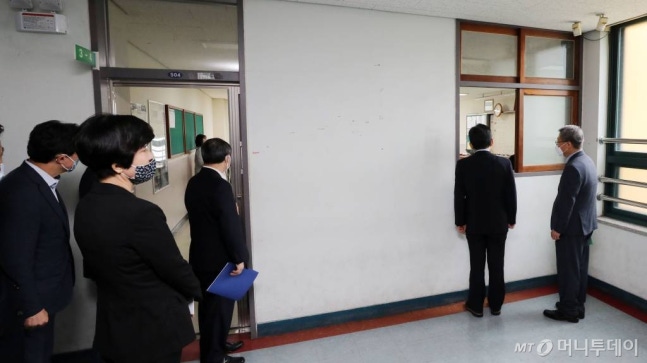 [서울=뉴시스]박주성 기자 = 정세균 국무총리가 22일 서울 영등포구 선유고등학교를 방문해 고3 학생들의 수업 상황을 점검하고 있다. 2020.05.22. park7691@newsis.com