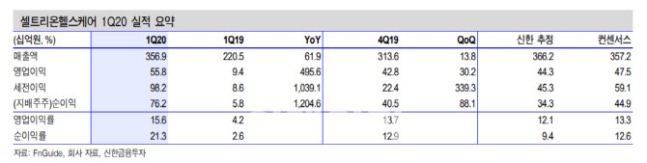 이 연구원은 “특히 영업이익률이 전년 동기 대비 11.4%포인트 개선됐다”며 “이는 작년 11월 미국에 트룩시마(Truxima) 출시로, 수익성이 높은 미국 매출 비중이 확대된 것에 따른다”고 말했다.