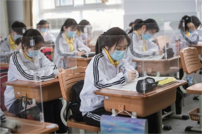 '코로나19 투명 가림막' 책상에서 공부하는 우한 학생들(사진=연합뉴스)한국에서 이태원 클럽 집단감염으로 코로나19 재확산 우려가 높아진 가운데 중국에서도 후베이성 우한시의 한 동네에서 무증상자가 대거 확진 판정을 받는 일이 발생했다.