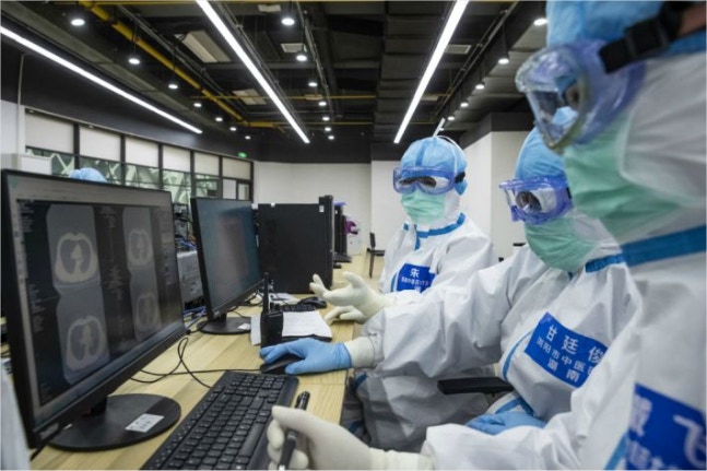 코로나19 환자 CT사진 살펴보는 우한 의료진(사진=연합뉴스)후베이성 위생건강위원회가 11일 발표한 전날 통계를 보면 10일 하루에 코로나19 확진자가 5명 발생했다. 전날에는 후베이성 내에서 36일 만에 확진자가 1명 보고되었다.