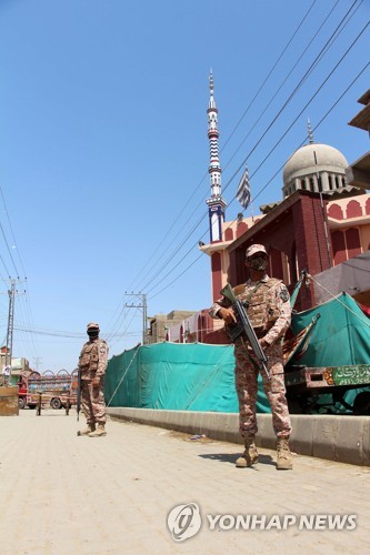 Pakistani security officials stand guard outside a mosque after the Sindh government announced the complete lockdown to prevent people from participating in congregational Friday prayers in mosques amid the ongoing coronavirus COVID-19 pandemic in Larkana, Pakistan, 03 April 2020. Countries around the world are taking increased measures to stem the widespread of the SARS-CoV-2 coronavirus which causes the Covid-19 disease. EPA/WAQAR HUSSNAIN