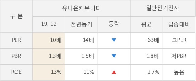 [표]유니온커뮤니티 투자지표 비교