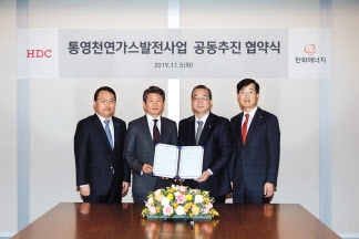 통영천연가스발전사업은 경남 통영시 광도면 성동조선해양 내 27만5269㎡의 부지에 1012㎿(메가와트)급 LNG 복합화력 발전소 1기와 20만㎘급 저장 탱크 1기 등을 건설해 운영하는 프로젝트다. 총 사업비는 1조4000억원에 달한다. 이번 협약으로 HDC는 발전소의 건설과 운영을, 한화에너지는 천연가스 공급을 담당하게 된다. 향후 유휴 부지 개발 등에 있어서도 양사가 적극적으로 협력해 사업을 추진키로 했다.