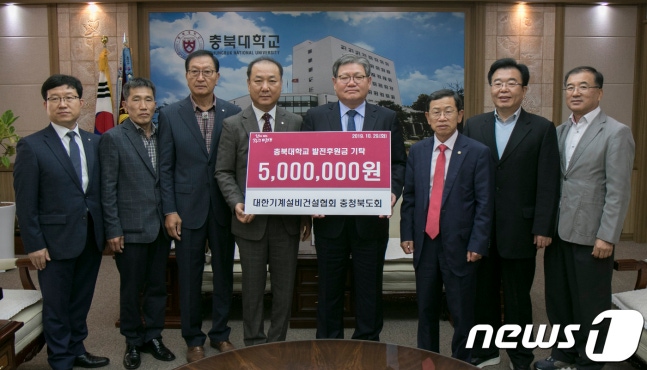 충청북도회 김동오 회장과 양승복 부회장 등은 전날 충북대를 찾아 "미래 기계설비산업 인재를 위해 써 달라"며 500만원을 전달했다.