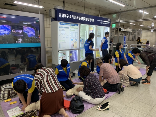 지난 상반기 강북구 응급의료교육반이 응급처치 출장교육을 하고 있다. [강북구]