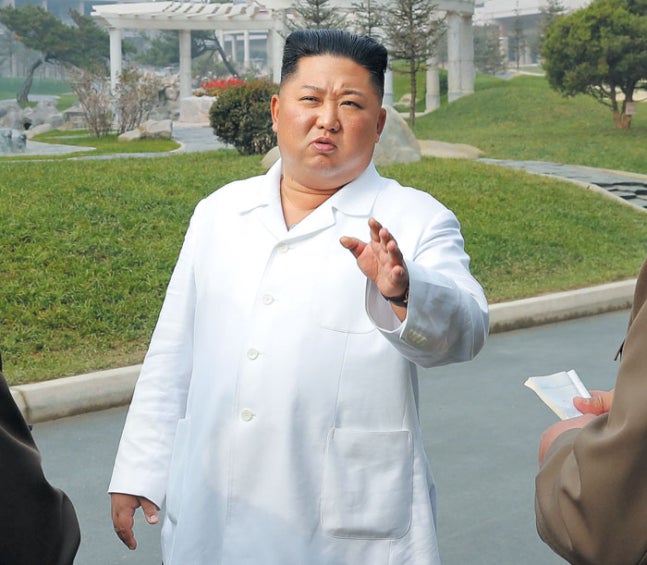 김정은 북한 국무위원장이 완공을 앞둔 평안남도 양덕군 온천관광지구 건설을 현장 지도했다고 조선중앙통신이 25일 보도했다. 김정은은 온천관광지구를 둘러보며 "이것이 우리식, 조선식 건설"이라고 했다. /조선중앙통신 연합뉴스