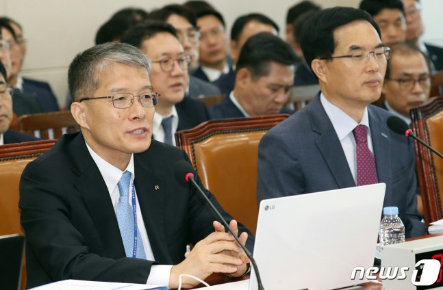 (서울=뉴스1) 김명섭 기자 = 한국수출입은행장 직무대행인 강승중 전무이사가 14일 서울 여의도 국회에서 열린 기획재정위원회 국정감사에서 의원질의에 답변을 하고 있다. 2019.10.14/뉴스1