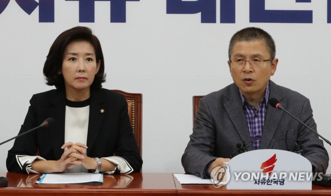 (서울=연합뉴스) 이진욱 기자 = 자유한국당 황교안 대표가 14일 오전 국회에서 열린 최고위원회의에서 발언하고 있다. 2019.10.14