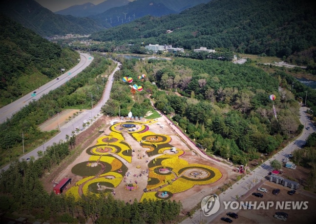 (인제=연합뉴스) 제1회 인제 가을꽃 축제 마지막 날인 13일 축제장을 찾은 관광객들이 내설악 첫 단풍과 함께 가을꽃을 만끽하며 추억을 만들고 있다. 올해 첫선을 보인 인제 가을꽃 축제는 지역 대표축제로 급부상한 채 16일간 대단원의 막을 내렸다. 2019.10.13 [인제군 제공.재판매 및 DB 금지]