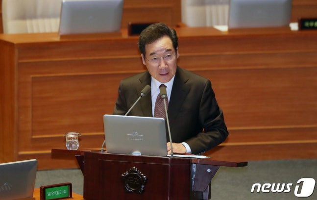이낙연 국무총리가 30일 서울 여의도 국회 본회의장에서 열린 정기국회에서 송영길 더불어민주당 의원의 경제분야 대정부 질의에 답변 하고 있다. 2019.9.30/뉴스1 © News1 이종덕 기자