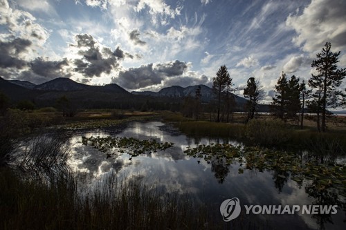epaselect epa07843378 A pond reflects the sky and the sun slowly setting near Lake Tahoe, south of Tahoma, California, USA, 09 September 2019 (Issued 14 September 2019). Located in the Sierra Nevada Mountains at the junction of the states of California and Nevada, Lake Tahoe is the biggest mountain lake in North America, covering 502 square kilometers, its elevation is 1987 meters above sea level and its depth is 501 meters. The area is very touristic offering activities thourghout the year from winter sports in the surrounding mountains to water activities. However, according to recent reports, Scientists have detected microplastic pollution in Lake Tahoe's deep blue waters for the first time and are looking for the source and potential harm for the local fauna and flora. Moreover, a certain type of invasive shrimp introduced in the 60s to fatten trout have seen its population grow exponentially to a point that they now pose a major threat to the lake's clarity. EPA/ETIENNE LAURENT