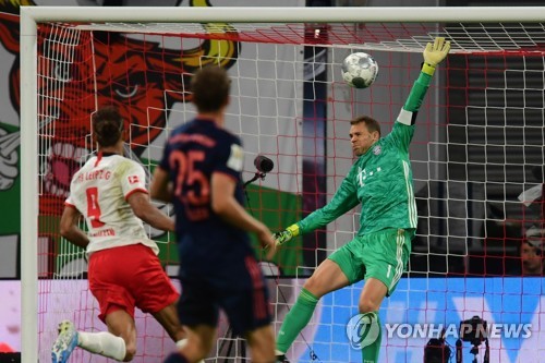 Bayern?s goalkeeper Manuel Neuer (R) in action during the German Bundesliga soccer match between RB Leipzig vs FC Bayern Munich in Leipzig, Germany, 14 September 2019. EPA/CLEMENS BILAN CONDITIONS - ATTENTION: The DFL regulations prohibit any use of photographs as image sequences and/or quasi-video