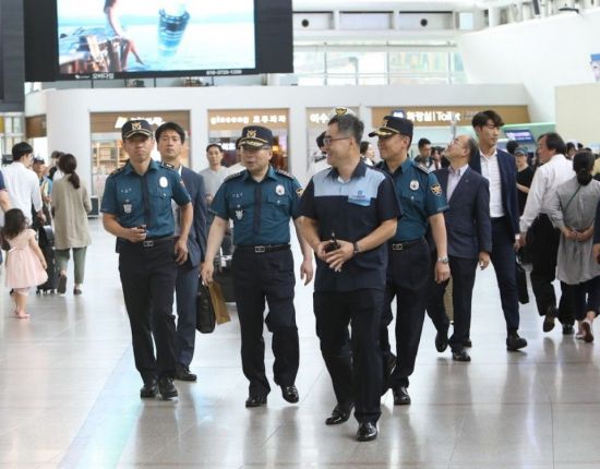 민갑룡 경찰청장이 추석 연휴 첫날인 12일 서울역에서 귀성현장 치안점검을 하고 있다./경찰청 제공