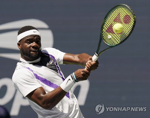 epaselect epa07801812 Frances Tiafo of the US hits a return to Alexander Zverev of Germany during their match on the fourth day of the US Open Tennis Championships the USTA National Tennis Center in Flushing Meadows, New York, USA, 29 August 2019. The US Open runs from 26 August through 08 September. EPA/RAY STUBBLEBINE
