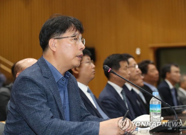 (서울=연합뉴스) 김상연 기자 = 27일 서울시청 다목적홀에서 열린 2019 가습기살균제참사 진상규명 청문회에서 최상락 전 유공 연구원이 질문에 답하고 있다. 2019.8.27