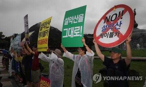설악산오색케이블카 반대하는 시민환경단체[연합뉴스 자료사진]
