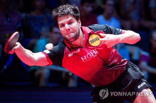 Dimitrij Ovtcharov of Germany in action against Patrick Franziska of Germany during the men's singles quarterfinals match at the Seamaster 2019 ITTF World Tour Czech Open in Olomouc, Czech Republic, 23 August 2019. EPA/LUKAS KABON