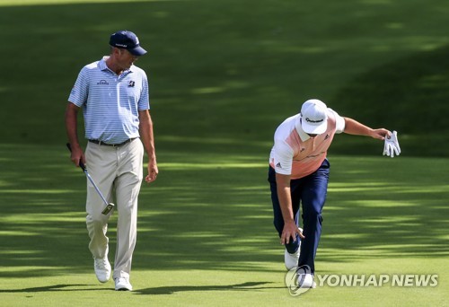 Jon Rahm of Spain (R) and Matt Kuchar of the US (L) walk up the eleventh fairway during the first round of the BMW Championship at Medinah Country Club in Medinah, Illinois, USA, 15 August 2019. The BMW Championship is the second of three playoff tournaments to determine the FedEx Cup champion. EPA/TANNEN MAURY