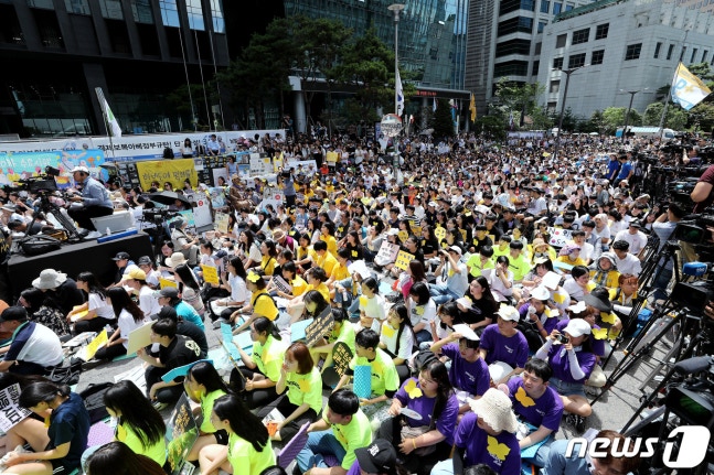 한편 북측의 '조선일본군성노예 및 강제련행피해자문제대책위원회'는 지난 12일 1400차 수요시위와 7차 기림일을 맞아 정의기억연대에 연대사를 전달하기도 했다. 2019.8.14/뉴스1