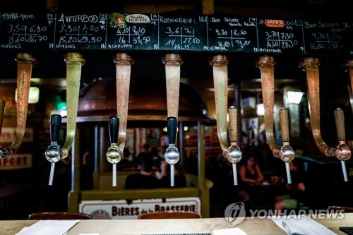 A view of some of the 29 copper beer taps at the Delirium Cafe, in Brussels, Belgium, 08 August 2019. The Delirium Cafe, nestled down a tiny alley in central Brussels, is a world famous tavern, which celebrates its 15th anniversary in 2019. The bar first entered the Guiness World Records in 2004 for having over 2000 beers on its menu. Its selection has grown considerably since then, with patrons now able to sample 3,162 beers, on tap or in bottle. Guests can taste a huge range of libations, from traditional Trappist ales to lighter, fruit-based beers, as well as more unusual flavors such as chocolate, banana or walnut. Tourists and locals alike flock to the bar, which has become an institution of Belgium's famed beer-drinking culture. EPA/STEPHANIE LECOCQ ATTENTION: This Image is part of a PHOTO SET