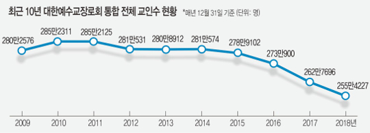 교회의 일꾼인 서리집사 감소 현상도 지속하고 있다. 지난해 58만9525명으로 1년 전 59만3184명에 비해 3659명(0.62%) 줄었다. 2016~2017년 사이에도 서리집사는 1만3878명 줄어들었다. 서리집사는 세례교인으로서 제직회 구성원이 되어 교회의 중요 결정과 봉사, 친교를 맡은 직분이다.