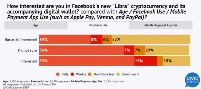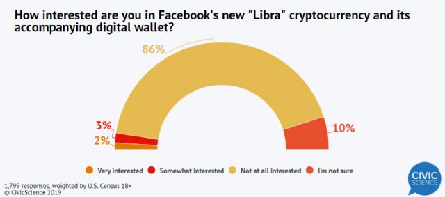 미국 성인을 대상으로 한 설문조사 결과, 응답자의 86%가 페이스북 리브라에 전혀 관심이 없다고 답했다. (이미지=시빅사이언스)