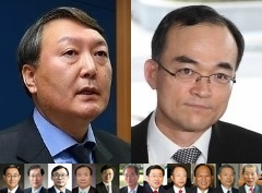 신임 43대 윤석열 검찰총장(왼쪽 상단)과 퇴임하는 42대 문무일 검찰총장(오른쪽 상단). 아래는 역대 검찰총장들(30~41대). 매일신문DB
