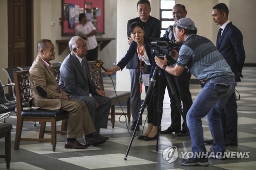epaselect epa07609163 Former Malaysian Prime Minister Najib Razak (2-L) is interviewed by a reporter outside the court room at the Kuala Lumpur High Court, in Kuala Lumpur, Malaysia, 29 May 2019. Najib Razak faces several criminal proceedings over suspected money laundering of 4.5 billion dollar from state fund 1Malaysia Development Berhad (1MDB). EPA/FAZRY ISMAIL