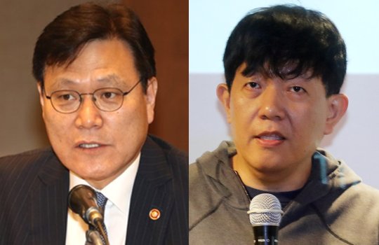 최종구 금융위원장(왼쪽)과 이재웅 쏘카 대표 최종구 금융위원장이 ‘타다’ 서비스로 택시업계와 갈등을 빚고 있는 이재웅 쏘카 대표에 대해 “이기적이고 무례하다”고 비판했다. 이에 대해 이재웅 대표는 페이스북을 통해 “출마하시려나”라며 받아쳤다.