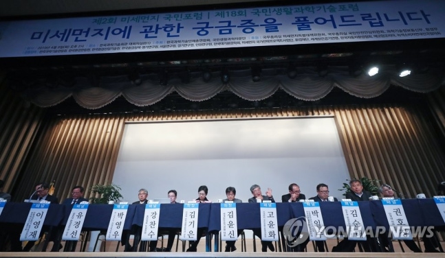 (서울=연합뉴스) 김도훈 기자 = 9일 오후 서울 강남구 한국과학기술회관에서 열린 제2회 미세먼지 국민포럼 '미세먼지에 관한 궁금증을 풀어드립니다'에서 고윤화 미세먼지 국민포럼 운영위원장이 발언을 하고 있다. 2019.4.9