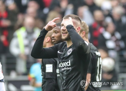 Frankfurt's Ante Rebic celebrates after scoring the opening goal during the German Bundesliga soccer match between Eintracht Frankfurt and TSG 1899 Hoffenheim in Frankfurt Main, Germany, 02 March 2019. EPA/ARMANDO BABANI CONDITIONS - ATTENTION: The DFL regulations prohibit any use of photographs as image sequences and/or quasi-video
