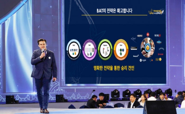 매튜 쥬에리 BAT코리아 사장이 25일부터 이틀간 경주 화백센터에서 진행된 2019 전국 세일즈 컨퍼런스에서 발표를 하고 있다.브리티쉬 아메리칸 토바코 코리아(BAT코리아)가 25일부터 1박 2일에 걸쳐 경주 화백컨벤션센터에서 전략적 리더십 컨퍼런스와 연계한 2019 전국 세일즈 컨퍼런스를 개최했다고 28일 밝혔다.