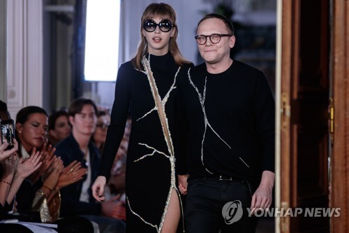 French designer Richard Rene (R) appears on the runway with a model after the presentation of his Fall/Winter 2019/20 Women's collection for Guy Laroche fashion house during the Paris Fashion Week, in Paris, France, 27 February 2019. The presentation of the Women collections runs from 25 February to 05 March. EPA/CHRISTOPHE PETIT TESSON