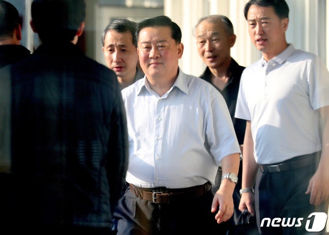 (하노이(베트남)=뉴스1) 박세연 기자 = 김철규 북한 호위사령부 부사령관이 18일 숙소인 베트남 하노이의 정부게스트하우스(영빈관)를 나서고 있다. 2019.2.18/뉴스1